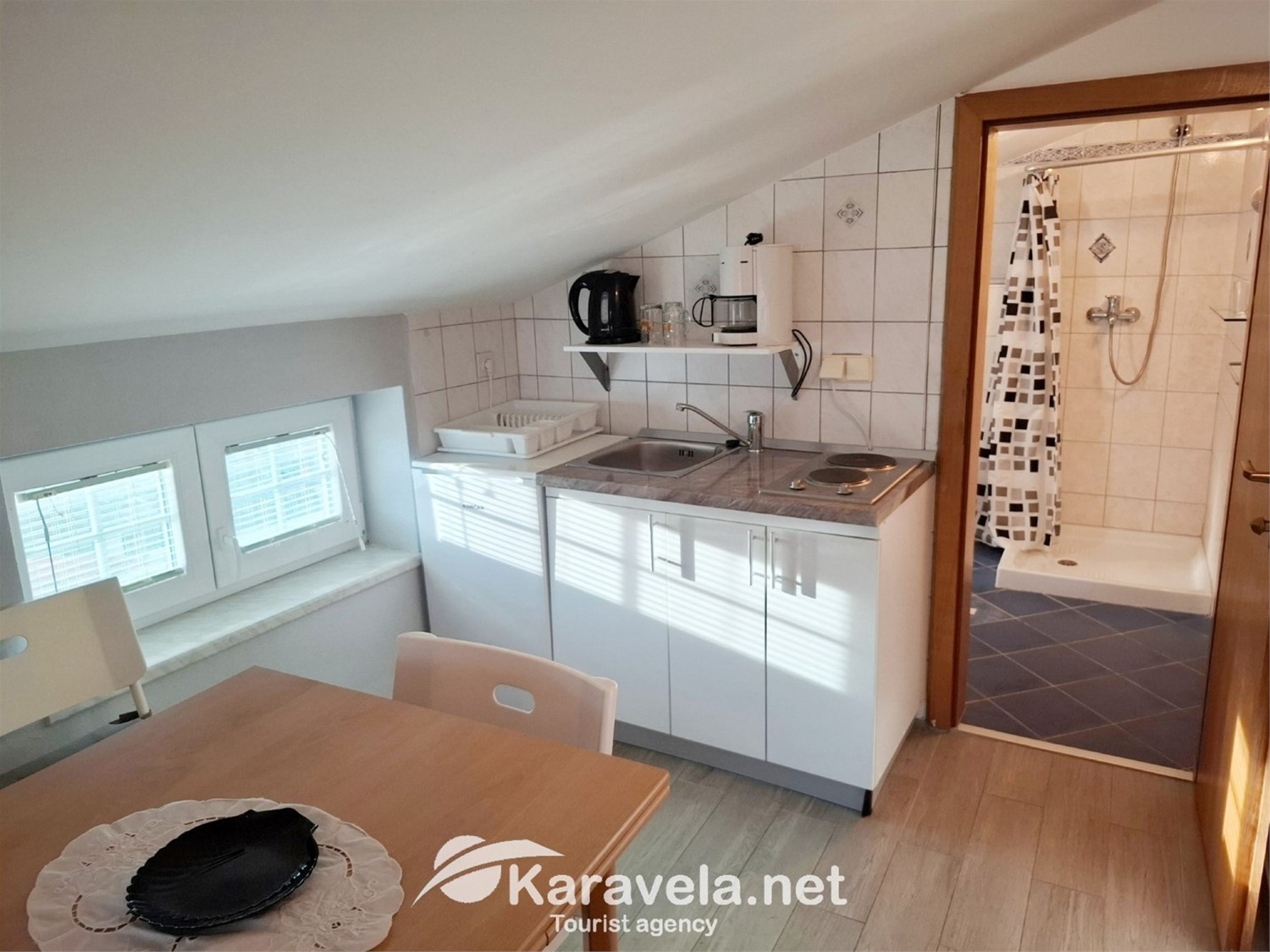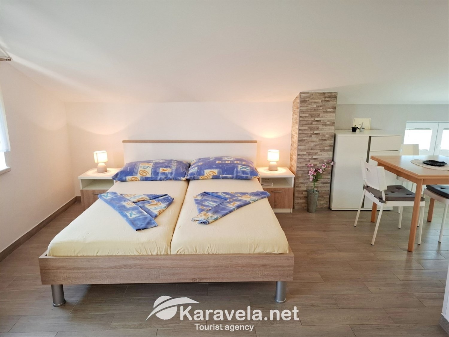 Apartman studio 2+0, Plaža: 1500 m, Klima uređaj, SAT/TV, Wi-Fi, Roštilj u vrtu, Privatno parkiralište, Terasa sa pogledom na more